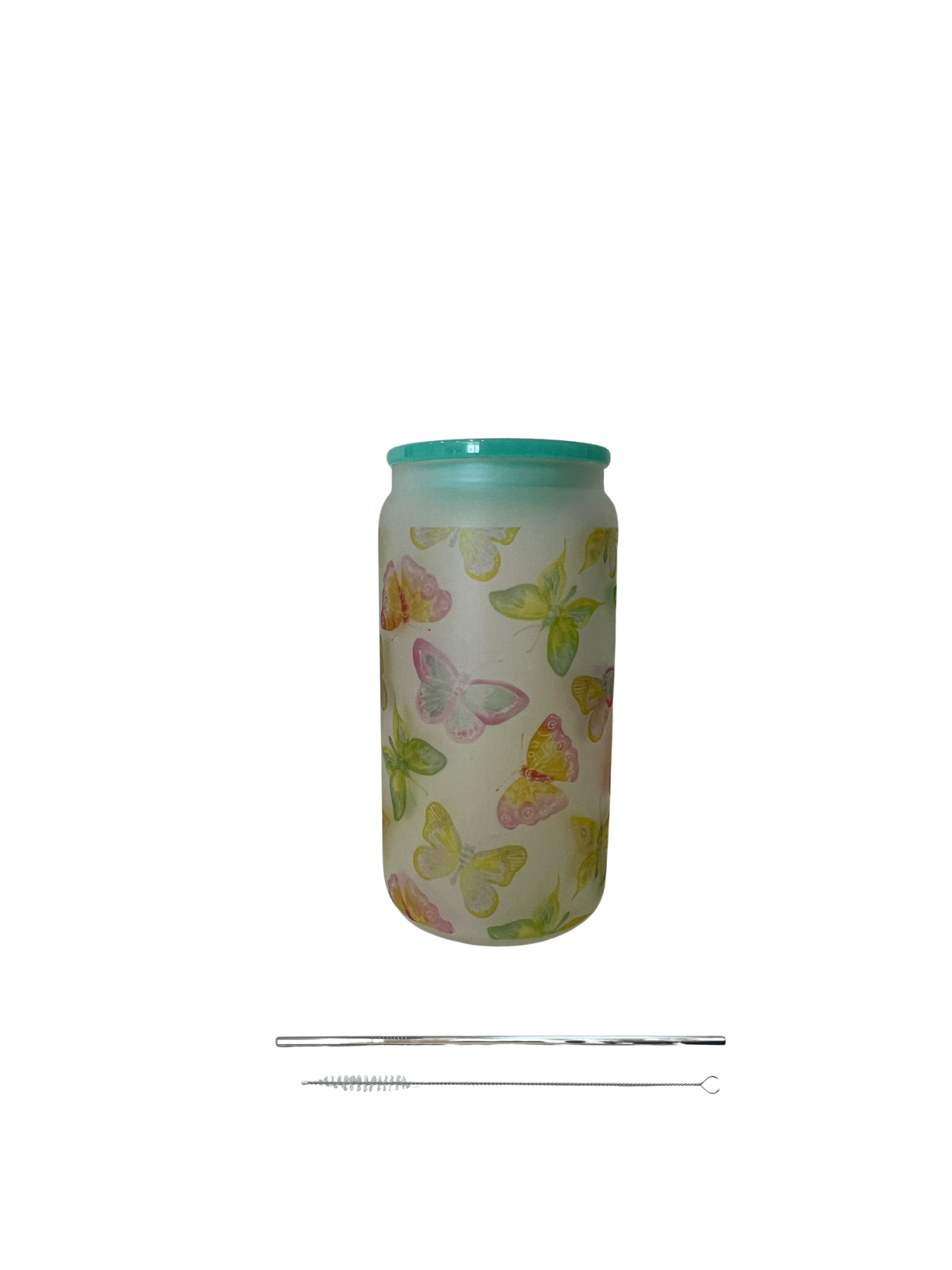 16oz Butterflies Frosted Glass Cup